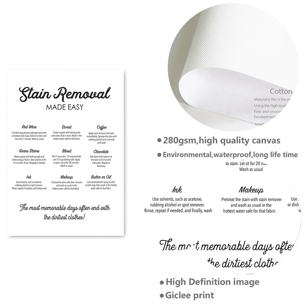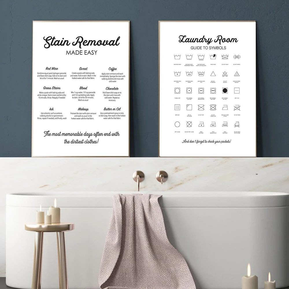 Наклейки для стирки, инструкции, Картина на холсте, черно-белый знак, руководство, цитаты, плакаты и принты, настенные картины для мытья комнаты