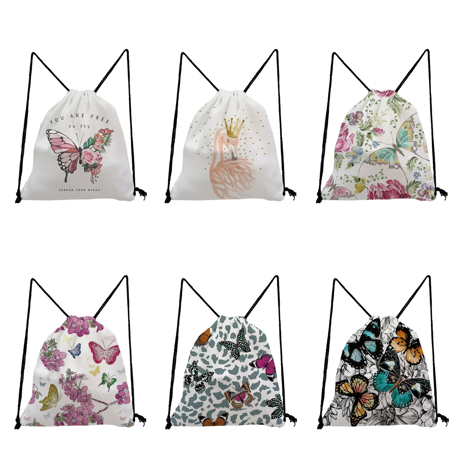 Рюкзак с бабочкой на шнурке, спортивная сумка для спортзала, многоразовая сумка для женщин и мужчин для йоги, плавания, путешествий, сумка для хранения, детская школьная сумка
