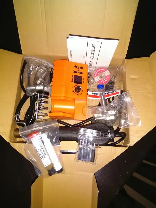ПаяльникРабочее напряжение: AC220-240V или AC100-127VВыходная мощность: 60 ВтЧастота: 50 Гц/60 ГцДиапазон температур: 200 °C-480 °CСтабильность температуры: ± 1 °CПаяльник: дизайн ESDМатериал нагревателя: керамика