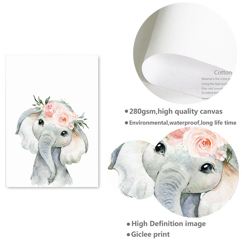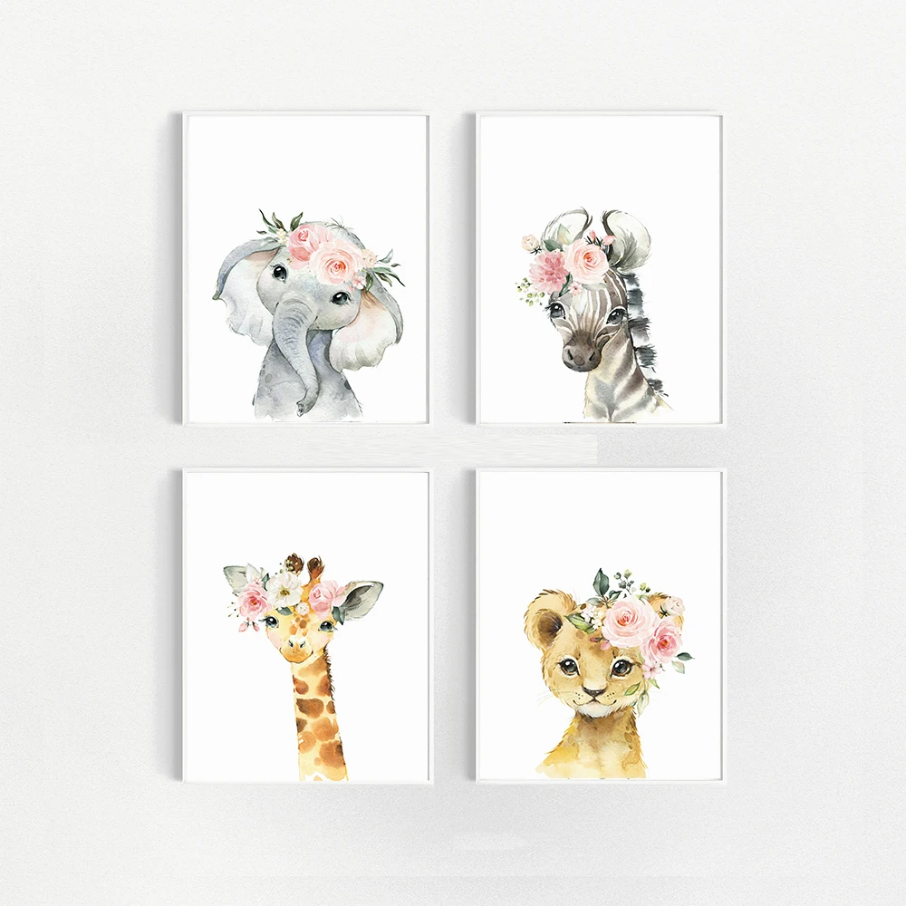 Розовые розы цветы сафари Животные Детская комната настенная Картина на холсте скандинавские постеры и принты детской комнаты