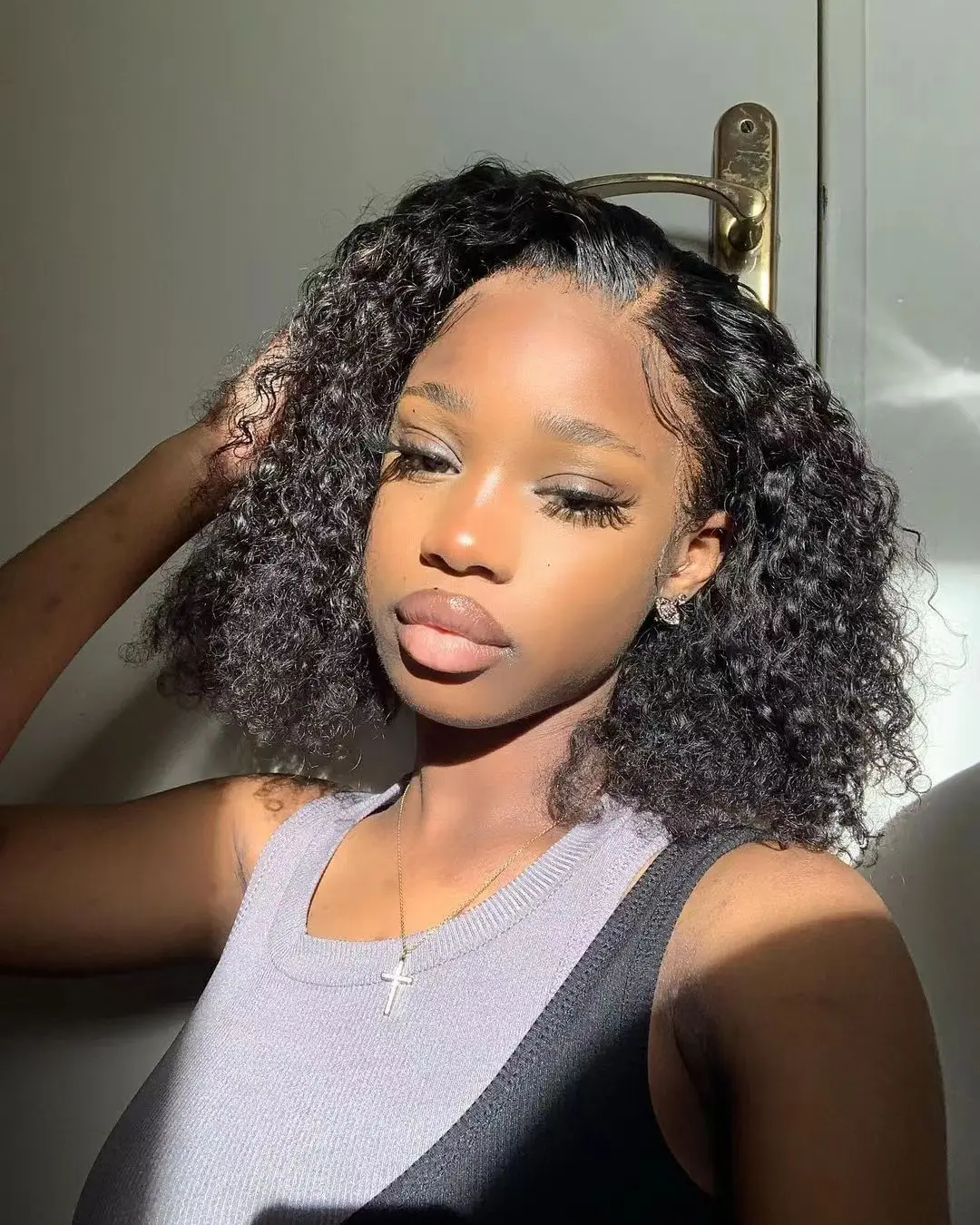 Афро кудрявые 4X4 кружевные короткие парики боб кудрявые передние человеческие волосы парики Remy бразильские парики предварительно выщипанные для женщин