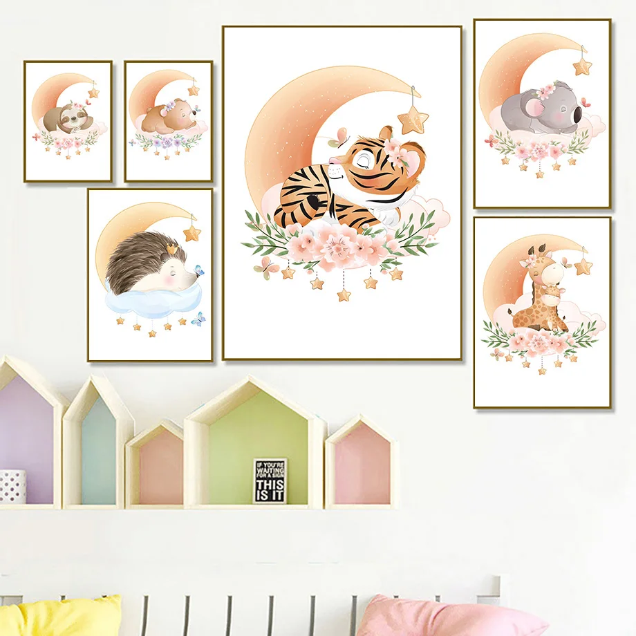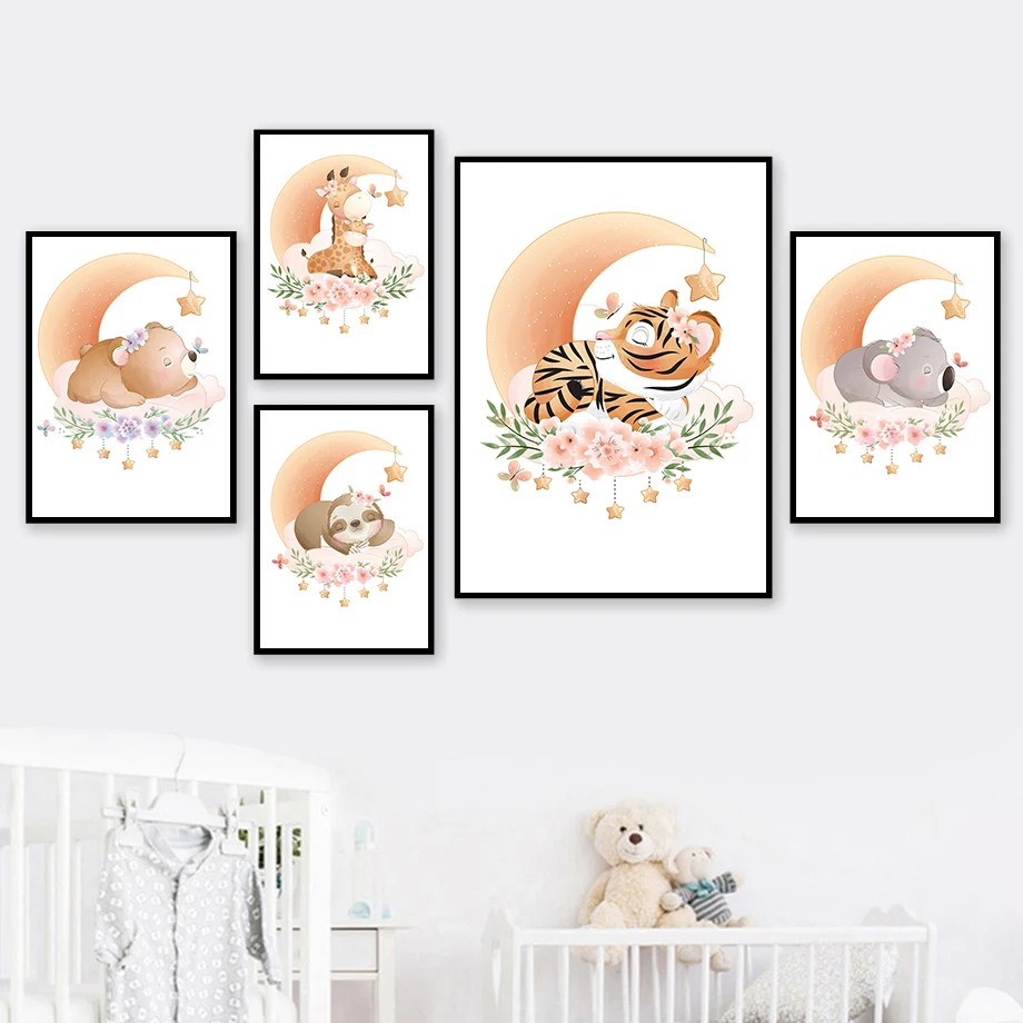Милый Леопардовый цветок моли Солнце Луна детская настенная Картина...