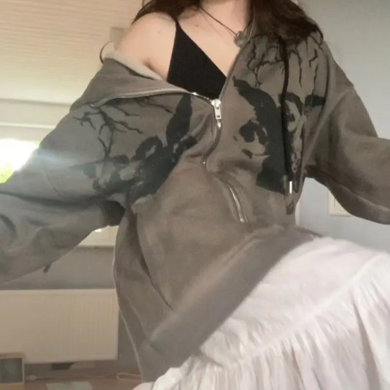 Черные худи на молнии в готическом стиле Y2K разразы уличная одежда...