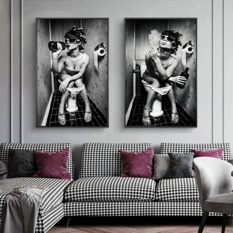 Скандинавская Картина на холсте Сексуальная Девушка сидит в туалете...