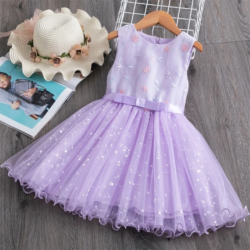 Детское кружевное платье без рукавов, летнее Сетчатое платье с цветочным принтом для девочек 3-8 лет