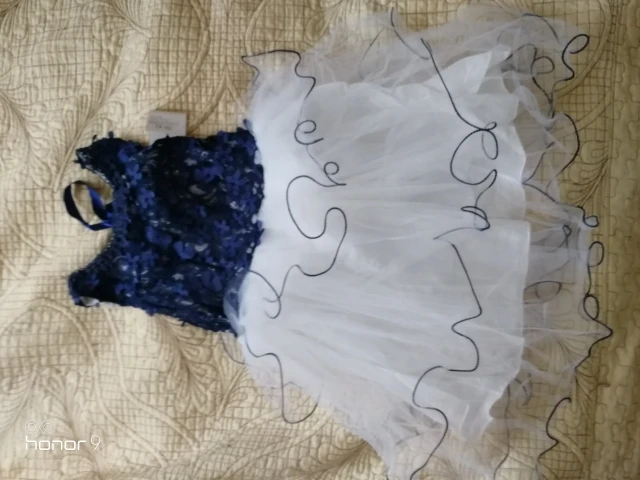 Платье конечно напоминает платье на фото, но выглядит намного хуже. Кружевной верх не плохой, зато юбка просто убожество. Нижний слой сетки всего один и через него отлично видно простой мятый подьюбник из обычной тонкой х/б ткани.