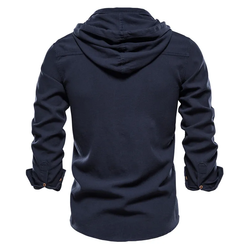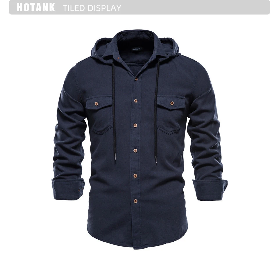 Рубашка мужская с капюшоном и длинным рукавом, из 100% хлопка