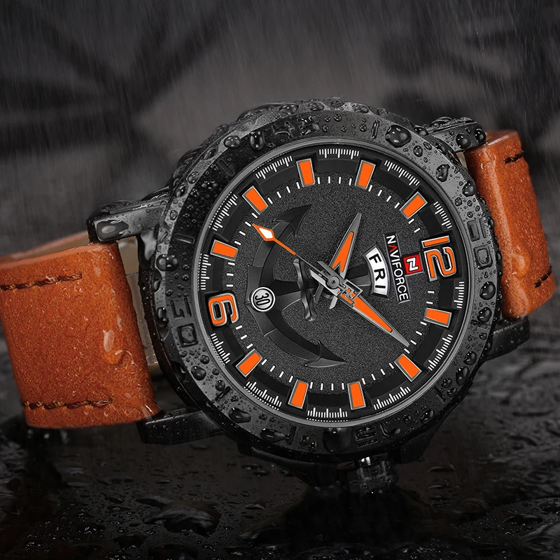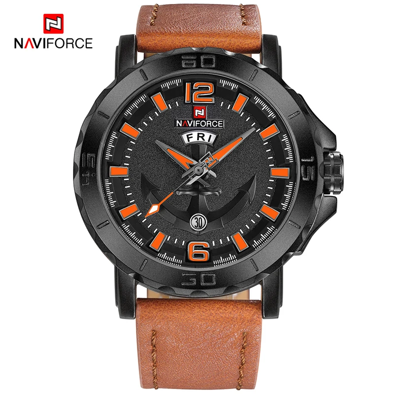 Часы наручные NAVIFORCE Мужские кварцевые, роскошные Брендовые спортивные аналоговые цифровые с кожаным ремешком