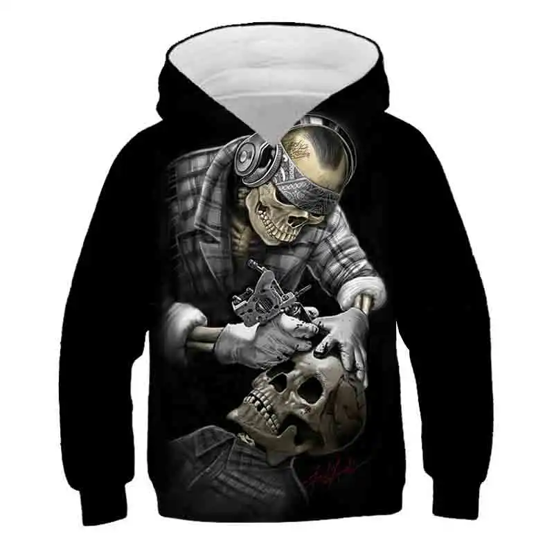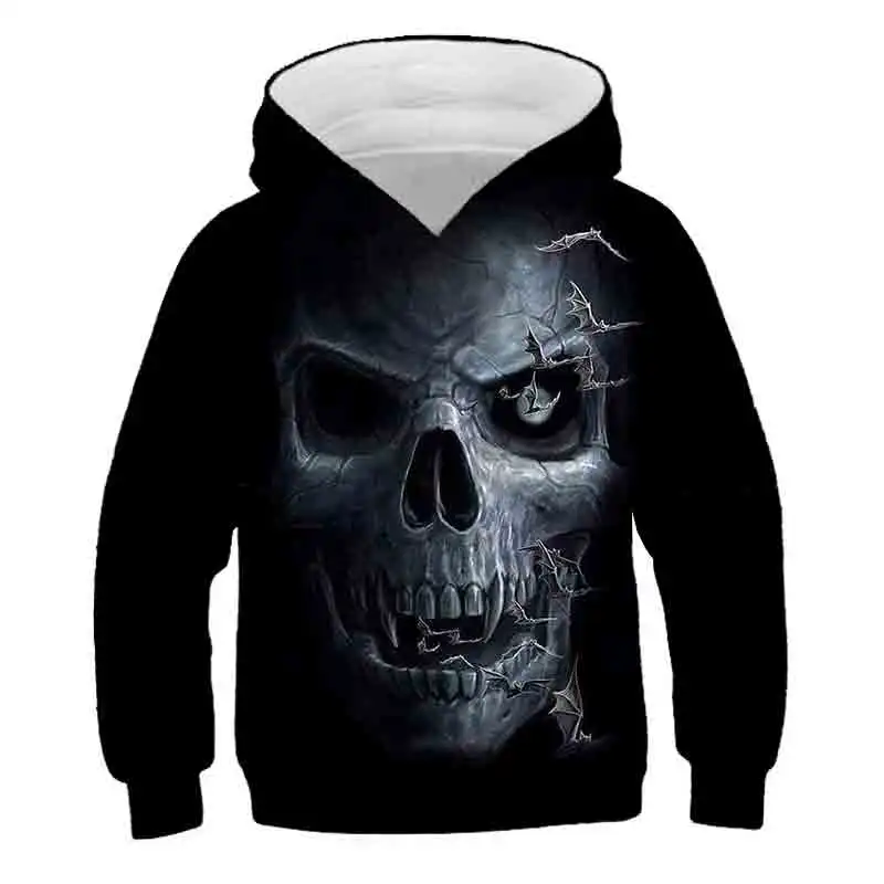 Толстовки с рисунком черепа и пламени, толстовки с 3D рисунком, для мальчиков и девочек, осень 2021, модные аниме платья, одежда для подростков, детей 4-14