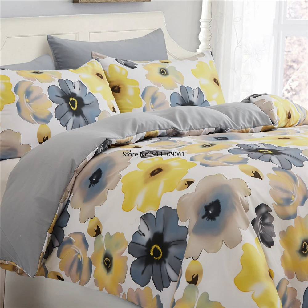 Постельное белье желто-зеленого цвета, с цветочным принтом