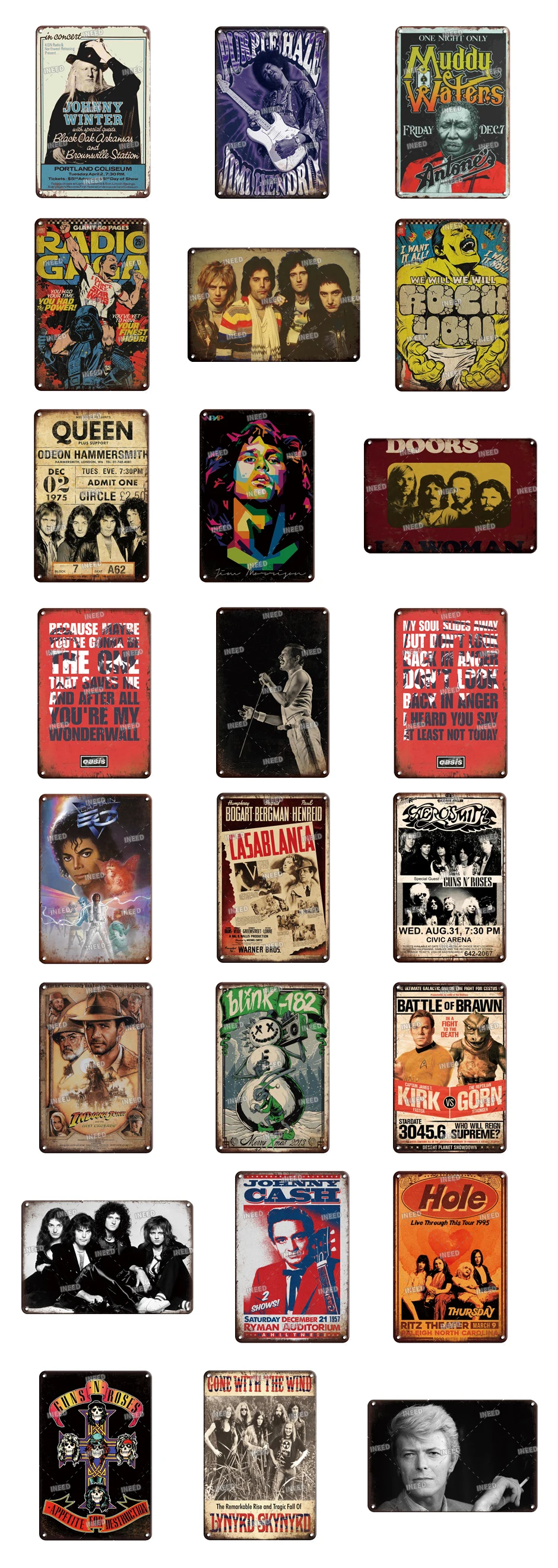 Старинные ностальгические музыкальные плакаты, жестяные знаки, винт...