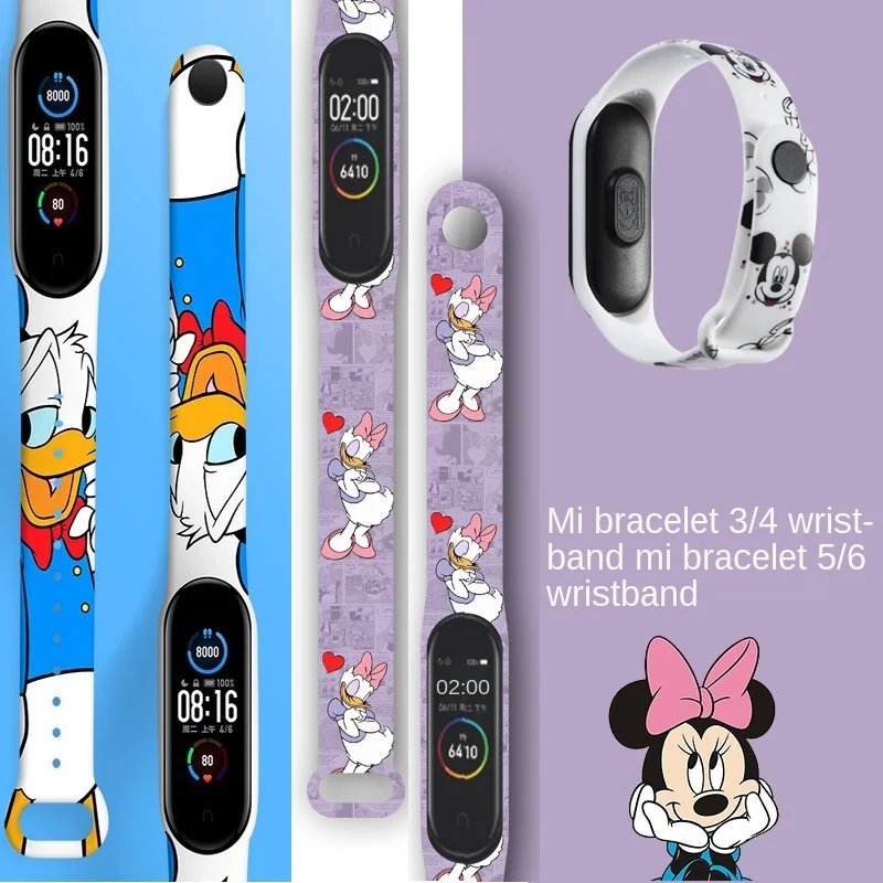 Силиконовый ремешок с изображением Диснея Микки Мауса Для Xiaomi Mi Band 3, 4, 5, 6, ремешок на запястье с защитой от пота, спортивный дышащий ремешок с пряжкой