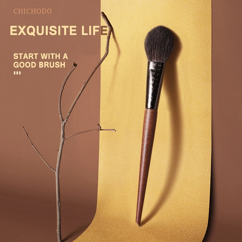 Кисть для макияжа от CHICHODO отличного качества. Упаковка хорошая - отдельный чехол и ндивидуальная коробочка. Длина кисти 19см., а длина ворса 3.5см. Ворс натуральный, мягкий и шелковистый, набит плотно. Ручка выполнена из дерева на которой имеется гравировка с названием бренда. Я её уже опробовала. Форма огонь, отлично подходит для прессованной или рассыпчатой пудры. Растушёвывает хорошо. Тонкие и мягкие щетинки просто гладят кожу, не вызывая раздражения, не колят и не царапают. Без запаха. Хорошо моется и быстро сохнет. В общем у кисти хорошая фурнитура и качество. Я довольна покупкой и могу рекомендовать для ежедневного макияжа.