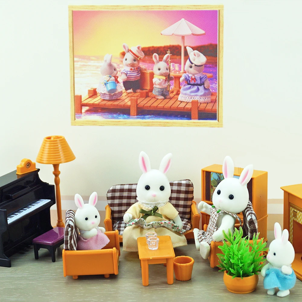 Мебель для кукольного дома 112, семейные фигурки с лесными животными, фигурки животных, молоко, кролик, семья, сделай сам, Монтессори, игрушка для девочек, подарок