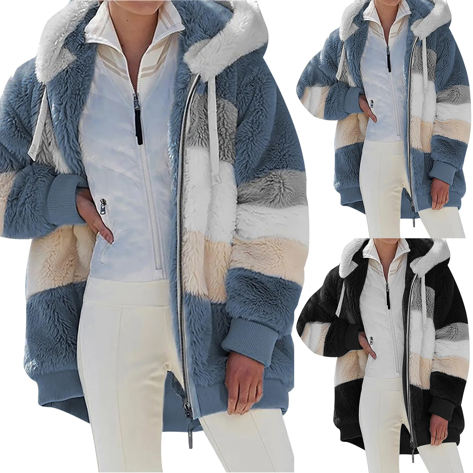 Зимняя женская куртка, модная плюшевая Лоскутная зимняя куртка с ка...