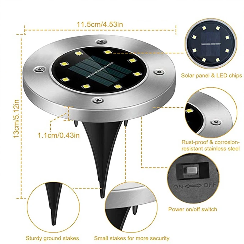 8 светодиодных подземных ламп, уличные фонари на солнечной батарее, IP65, водонепроницаемое освещение для сада, уличные фонари, напольное освещение