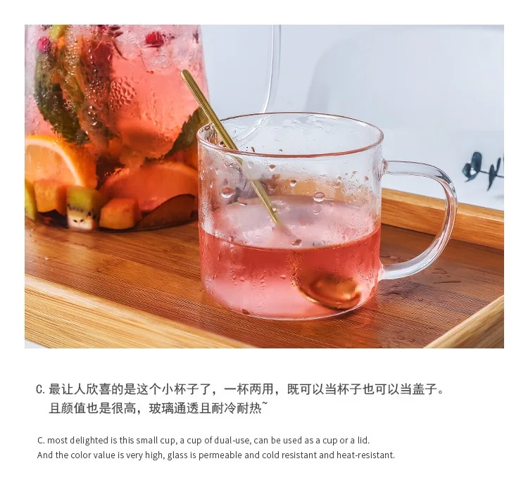 1200 мл стеклянный кувшин для воды с крышкой чашки, графин для воды с ручкой, кувшин для горячейхолодной воды, большой кувшин для домашнего сока, холодного чая