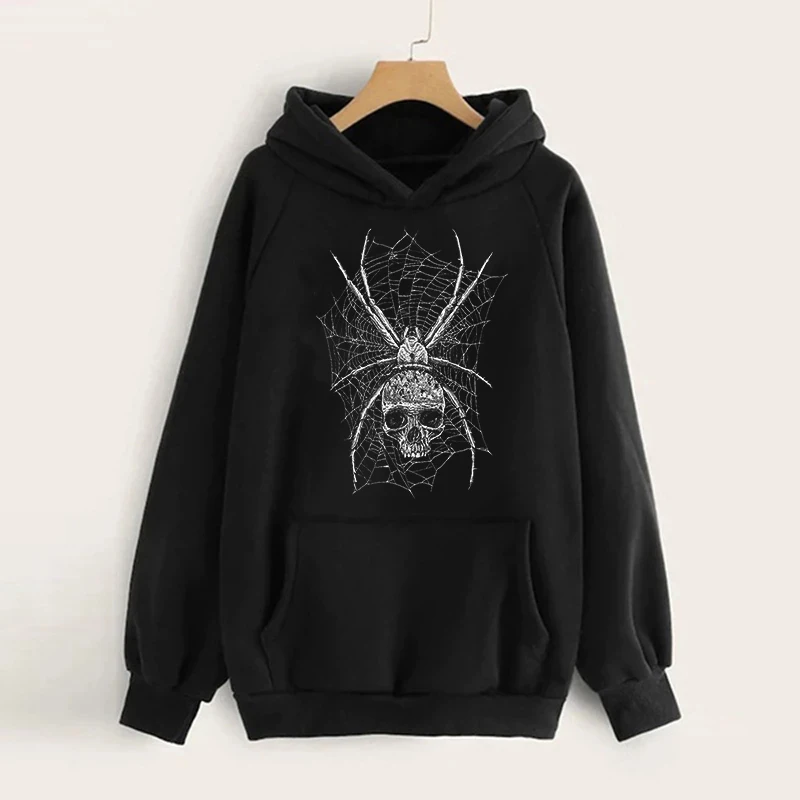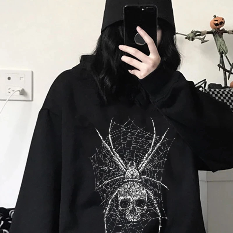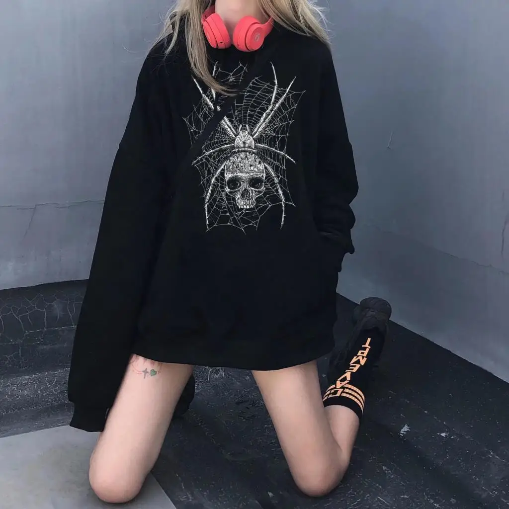 Y2K модная повседневная толстовка большого размера в Корейском стиле с принтом паука Ulzzang черная винтажная Готическая Толстовка в стиле хип-хоп Уличная одежда