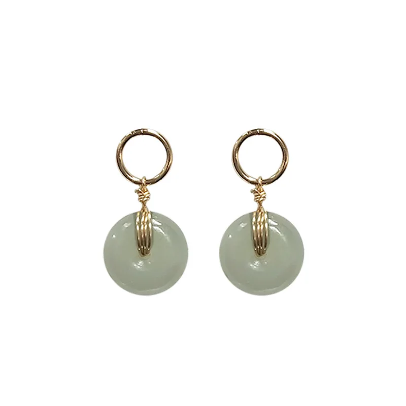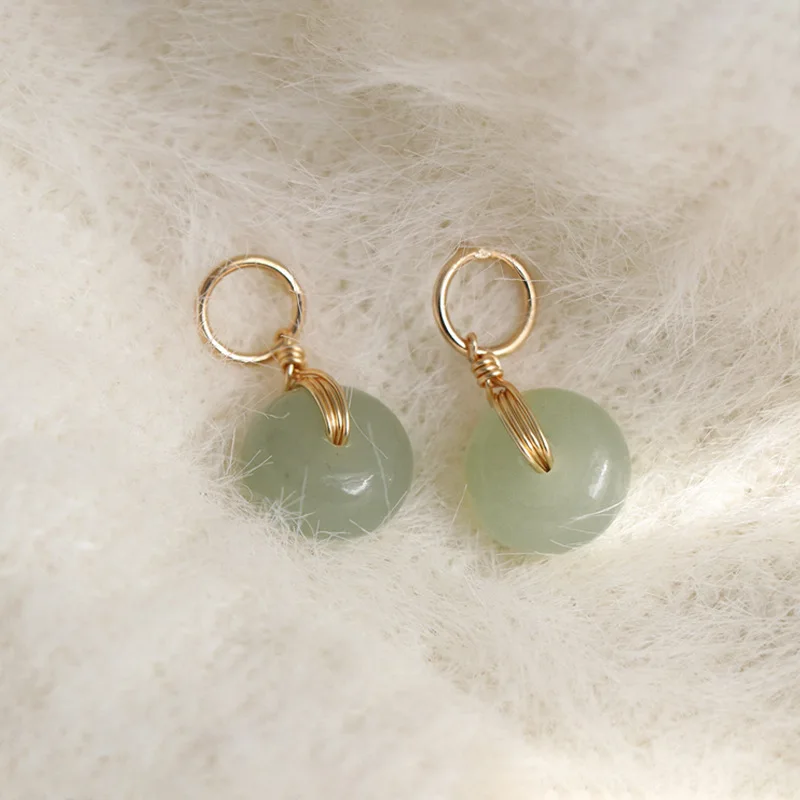 Серьги-подвески женские из 14-каратного золота с натуральным зеленым нефритом, изящная бижутерия