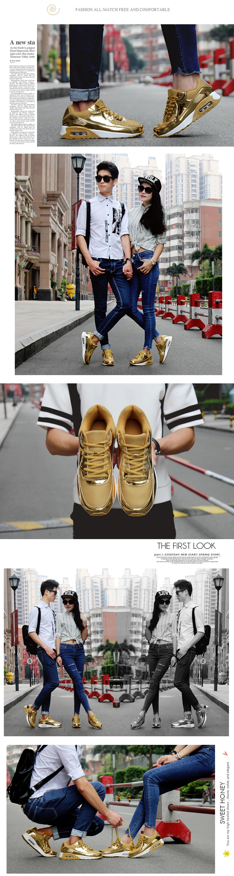 Мужская спортивная обувь, женские дышащие сетчатые кроссовки, Уличная обувь для бега, мягкие спортивные кроссовки с воздушной подушкой, золотистые и Серебристые
