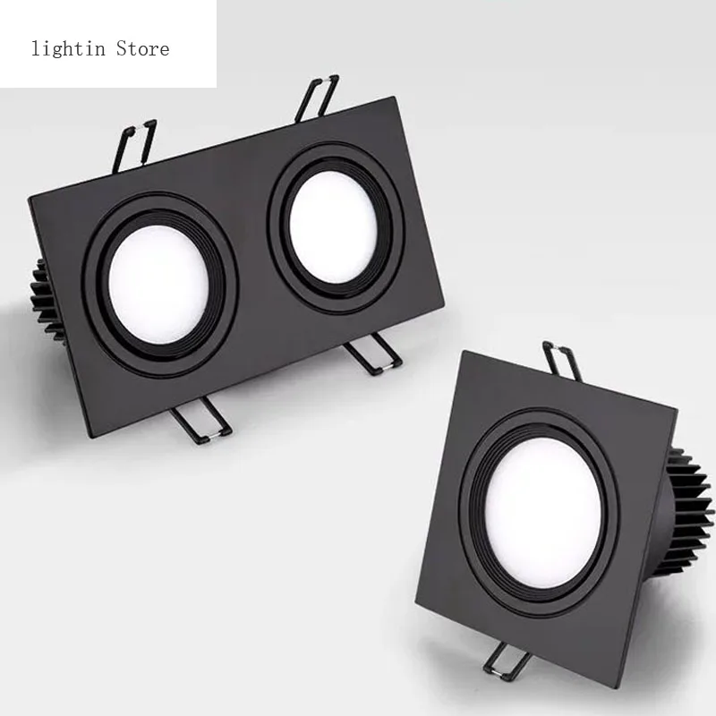 Светильник с регулируемой яркостью, черный Светодиодный точечный светильник COB, потолочный светильник, сетчатый светильник AC110V 220V 7w9w12w14W18W24W, светодиодный топленная квадратная Светодиодная панель