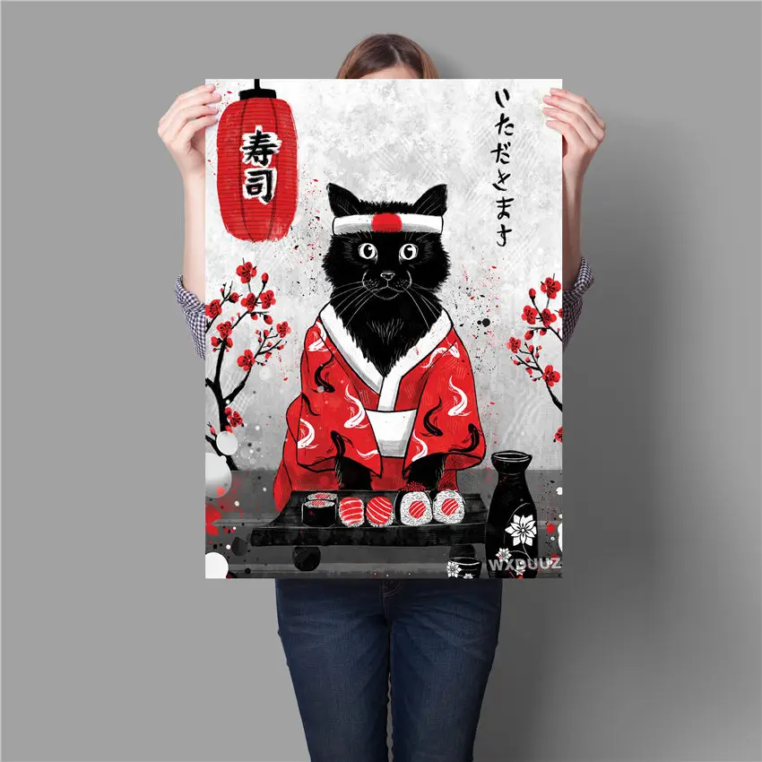 Ретро-постеры в виде японской кошки самурая, искусство, Декор, Наст...