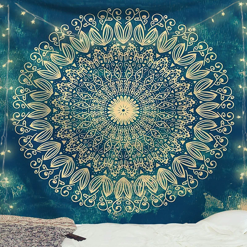 Индийский гобелен с мандалой, Настенное подвесное художественное пл...