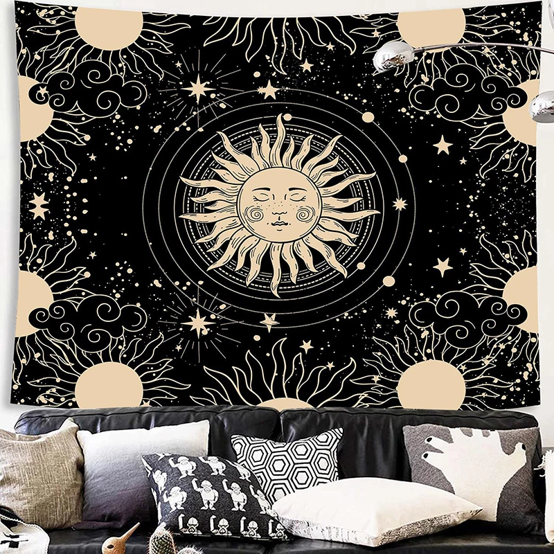 Psychedelic Таро белый черный солнце гобелен с Луной стене висит Ас...