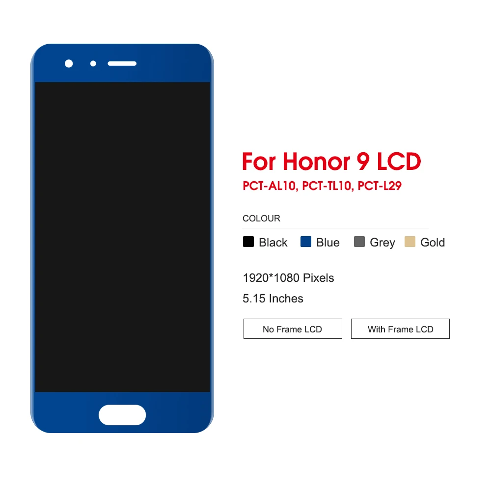 Дисплей с рамкой для Huawei Honor 9, 5,15, STF-L09, STF-AL10 дюйма, сенсорный ЖК-экран, дигитайзер, запчасти для ремонта