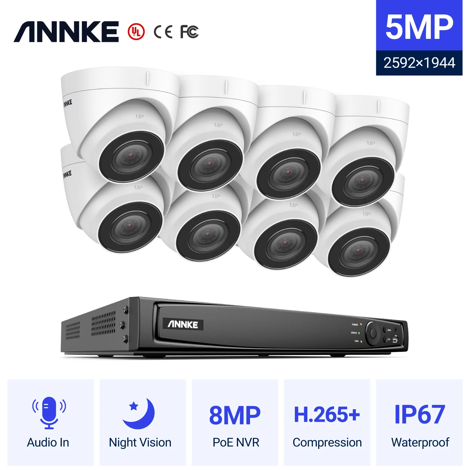 ANNKE 5MP H.265 + 16CH PoE сетевая система безопасности видео 8 шт 2,8 мм объектив IP67 Открытый ip-камеры с питанием по POE Plug Play PoE камера комплект