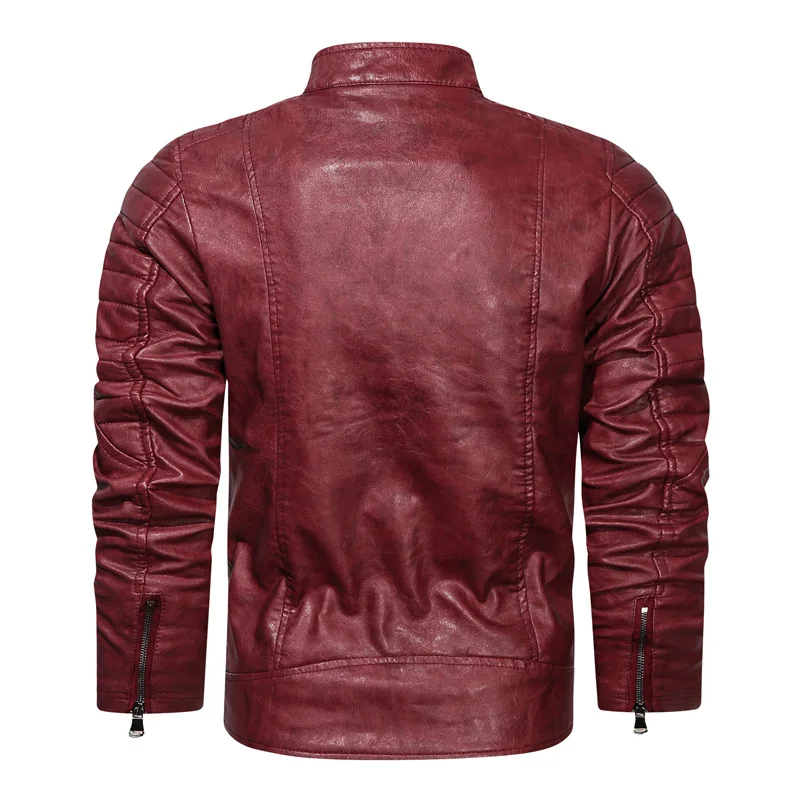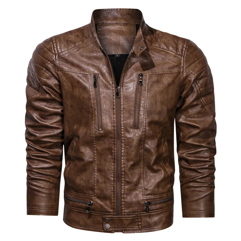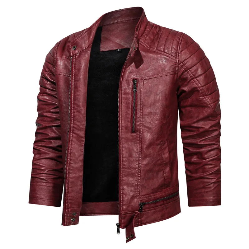 Мужская винтажная кожаная куртка, черная однотонная байкерская куртка из искусственной кожи, одежда для зимы, 2022