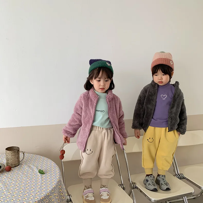 Детские Шерстяные плюшевые пальто для маленьких мальчиков; Теплая куртка ярких цветов для девочек; Мягкая верхняя одежда с высоким воротником; Повседневная одежда; Коллекция 2021 года; Сезон осень-зима