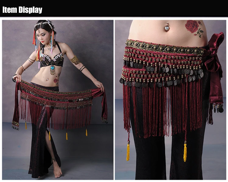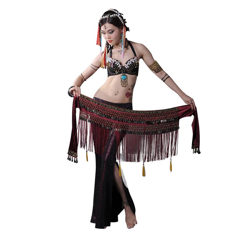 Аксессуар для танца живота женский, классический красный пояс для выступлений на сцене, одежда для танца