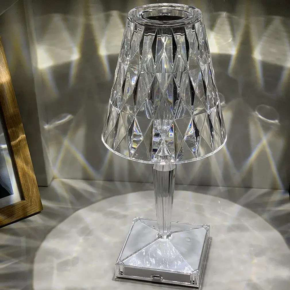 3. Вся настольная лампа изготовлена из акрилового материала, с гладкими линиями и простым дизайном. Алмазная огранка отражает светильник и тени, такие как бриллианты.