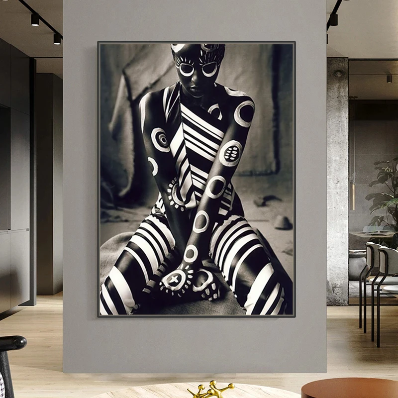 Современная Африканская женщина дневная живопись абстрактный черный и белый узор Рисунок настенные картины декор для гостиной