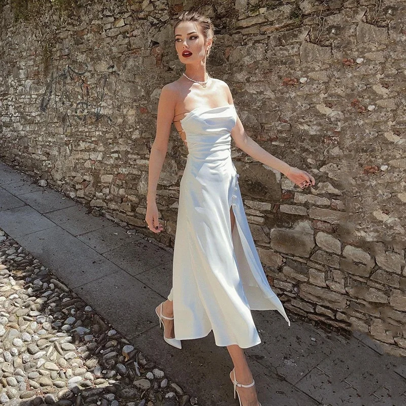 Платье женское атласное с открытой спиной, пикантный бандажный Одно...