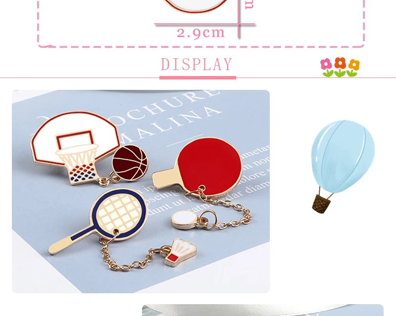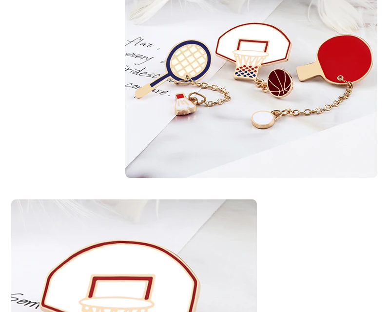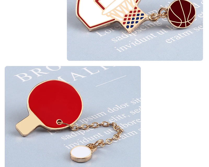 Спортивная серия булавки креативные шары Брошь с цепочкой баскетбол бадминтон Стол Теннисный значок Рюкзак ювелирное украшение в виде лацкана Мальчик Мужской подарок