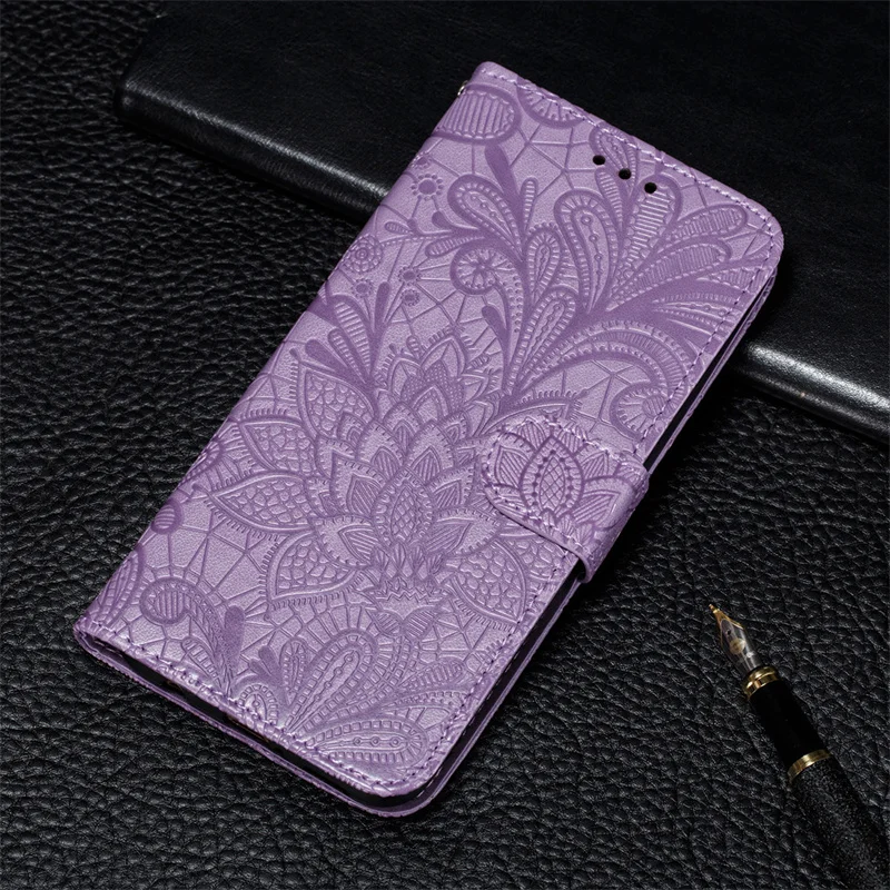 Кожаный чехол-бумажник с кружевными цветами для Xiaomi 9 9T 10 Pro ...