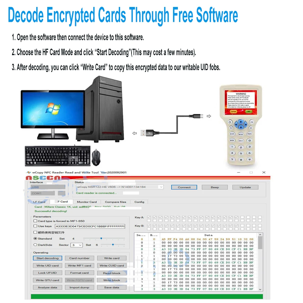 Считыватель RFID, записывающее устройство, Дубликатор USB-карт, 10 частот, 125 кГц, 13,56 МГц, декодер NFC, копировальный аппарат, программатор смарт-карт, записываемые ключи