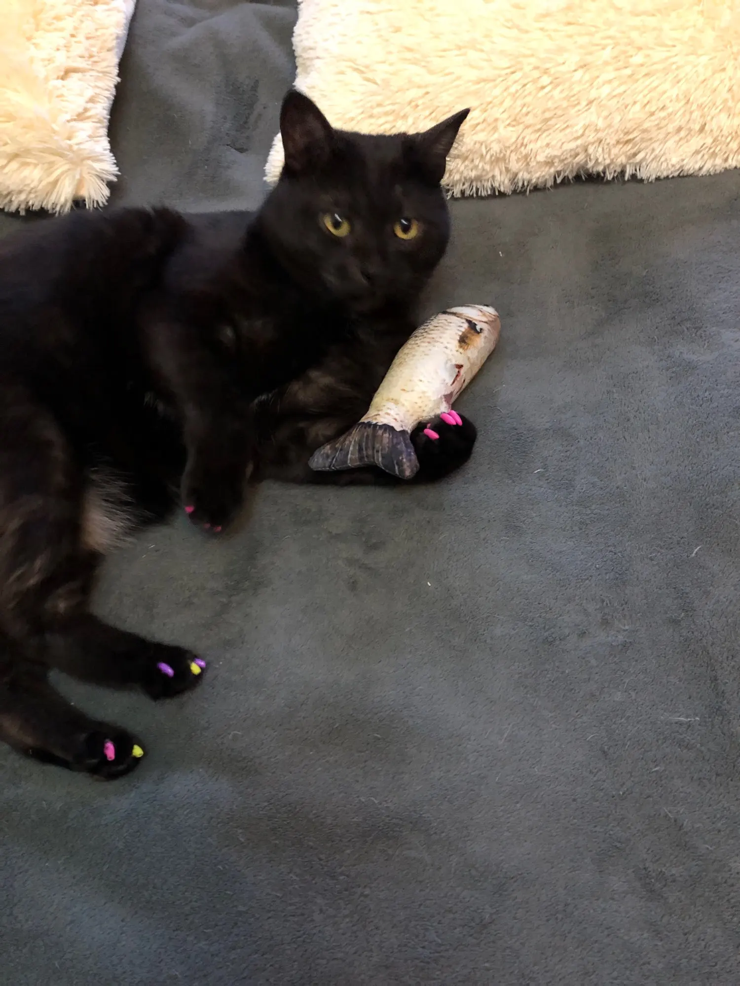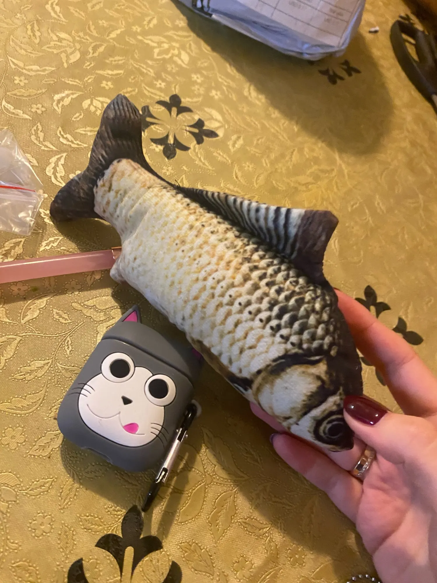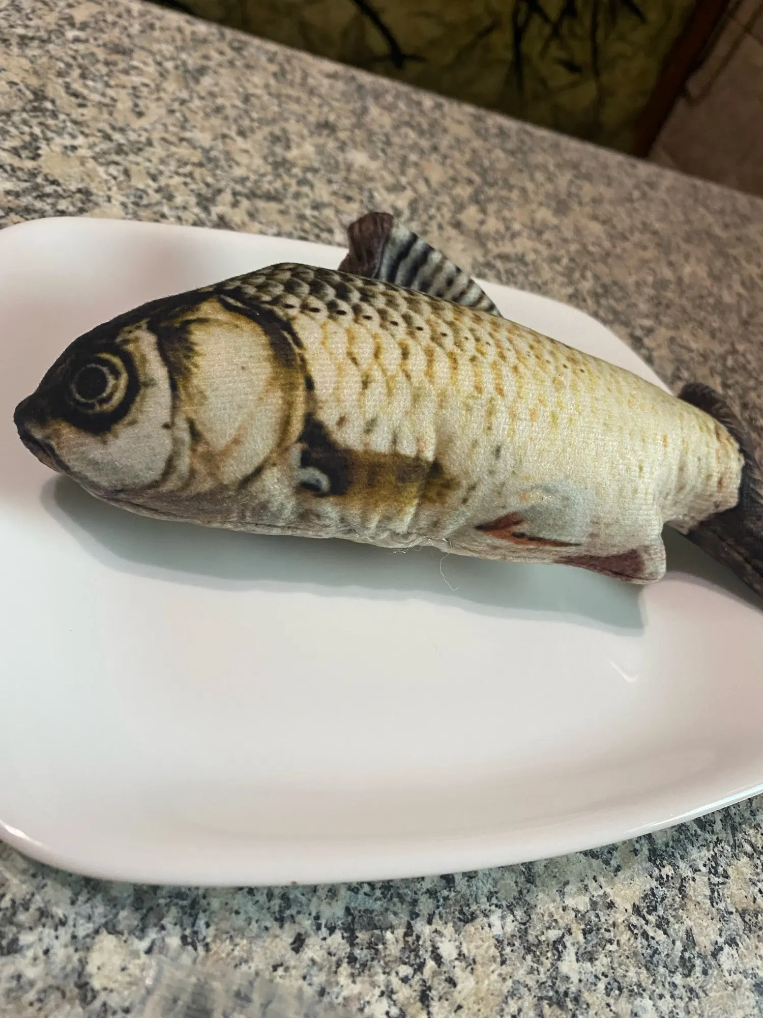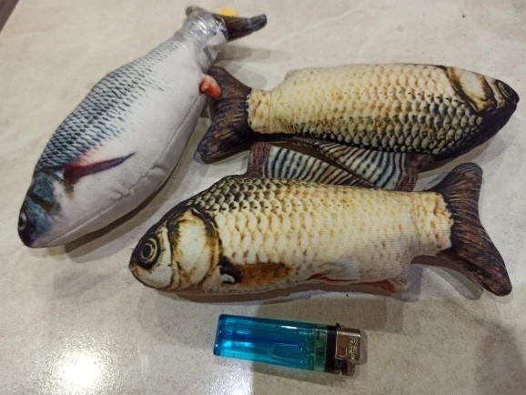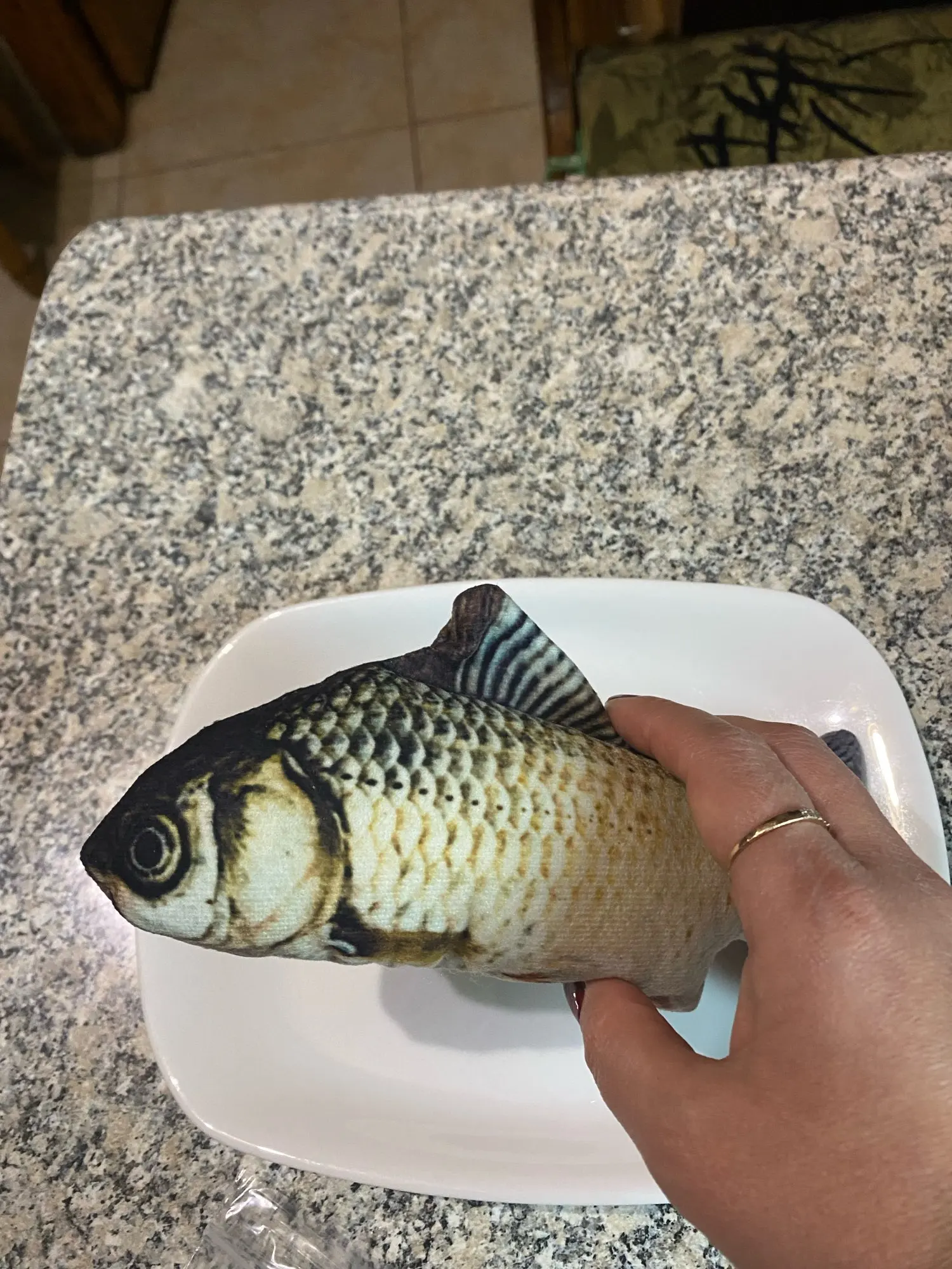 котёнку рыбка понравилась. играет охотно. мягкая и красивая