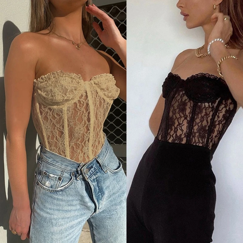 Женский сексуальный сетчатый укороченный Топ без бретелек с оборками, цветочный кружевной прозрачный корсет, бюстье, бюстье, бюстгальтер для клубной вечеринки, нижнее белье