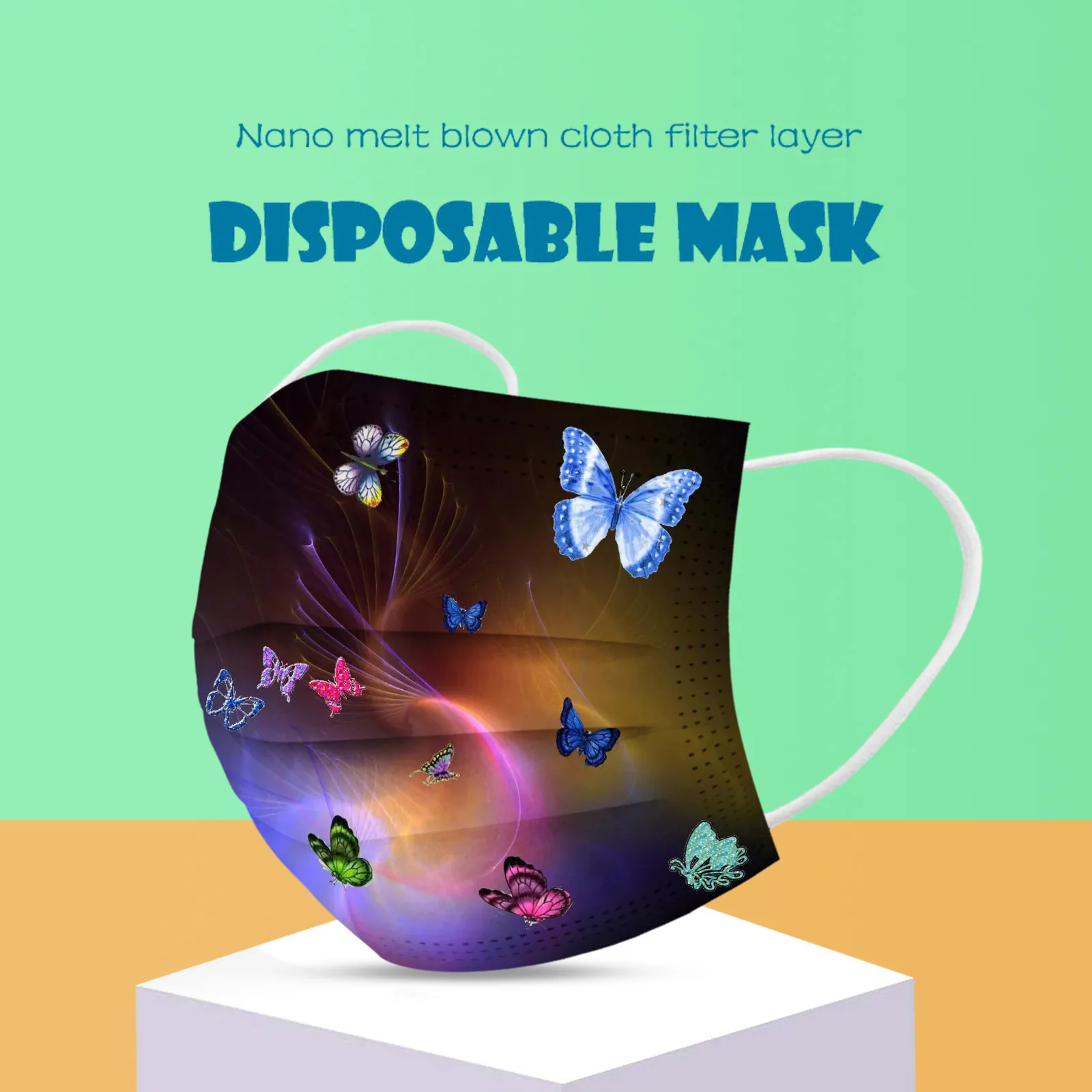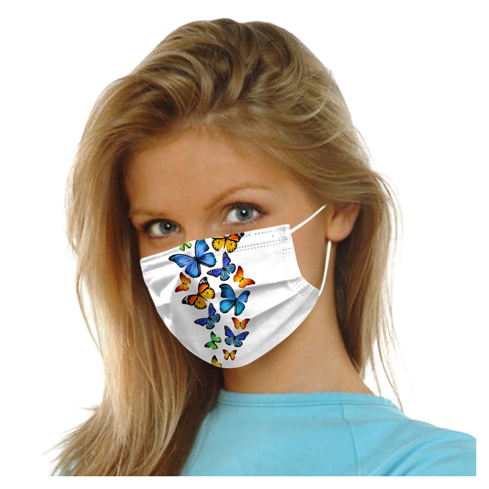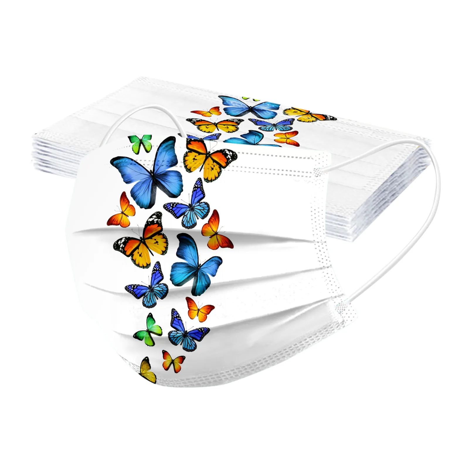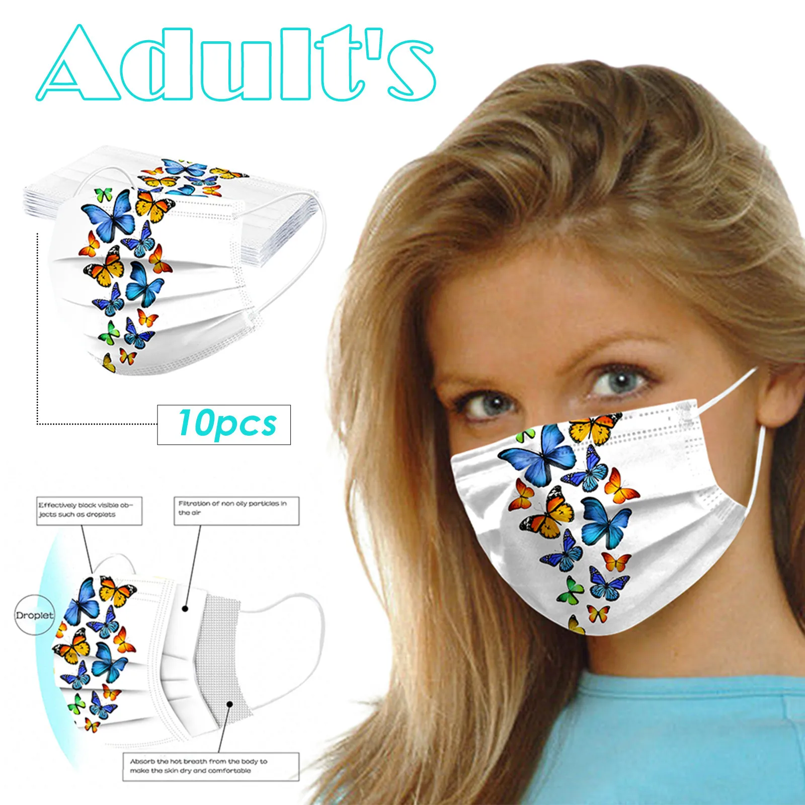 Маска для лица одноразовая, с принтом бабочек, 3 слоя, дышащая, 10 шт., маска для лица для взрослых