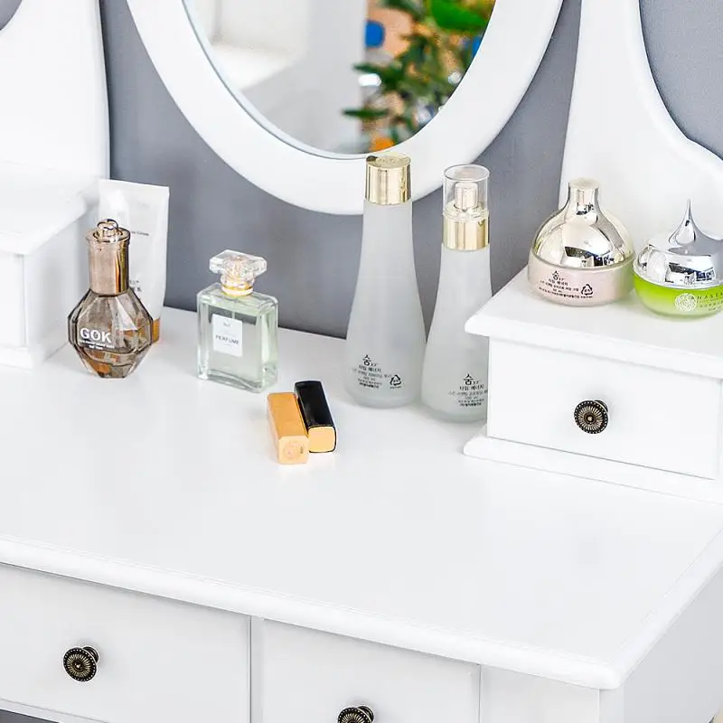 4. Туалетный столик поддерживается высококачественным МДФ (уровень E1) и твердыми деревянными ножками, которые очень устойчивы и элегантны;