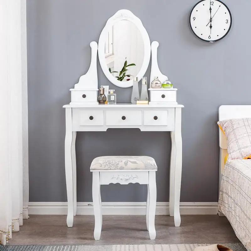 Туалетный столик с зеркалом, пять выдвижных ящиков, один стул для девочки, современная спальня, скандинавский туалетный столик, украшение для дома, мебель для спальни