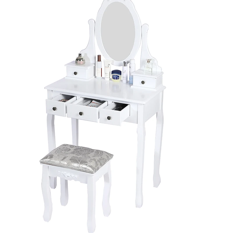 1. Большой стол с большой емкостью 75 × 40 см можно использовать отдельно, с 5 ящиками и небольшим столом для хранения, обеспечивая большое пространство для хранения всех личных вещей: ювелирных изделий, аксессуаров, косметических товаров, И т. д.