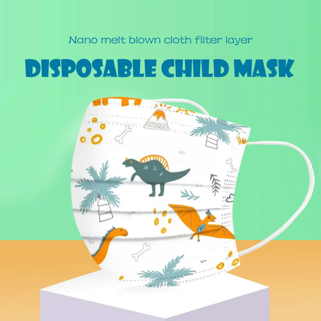 50 шт., одноразовые маски для лица с мультяшным динозавром