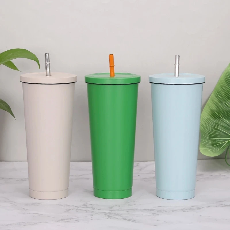 Stainless Steel Straw CupLarge Capacity Vacuum Solid Color