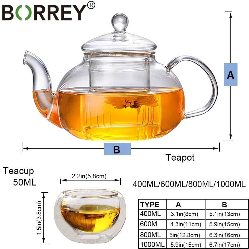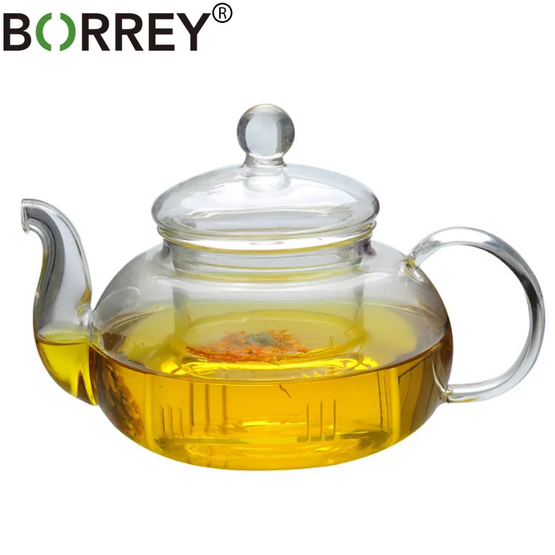 Термостойкий Стеклянный заварочный чайник BORREY, стеклянная чашка с двойными стенками, прозрачный заварочный чайник, чайник для чая, различные вкусы