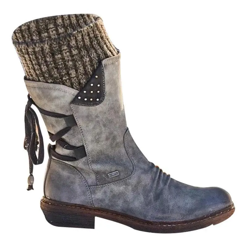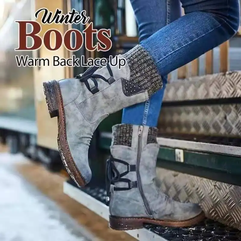 Новинка 2021, женские зимние ботинки Kalsooni, теплые ботинки со шнуровкой сзади, ботинки-мартинсы до середины икры, на шнуровке