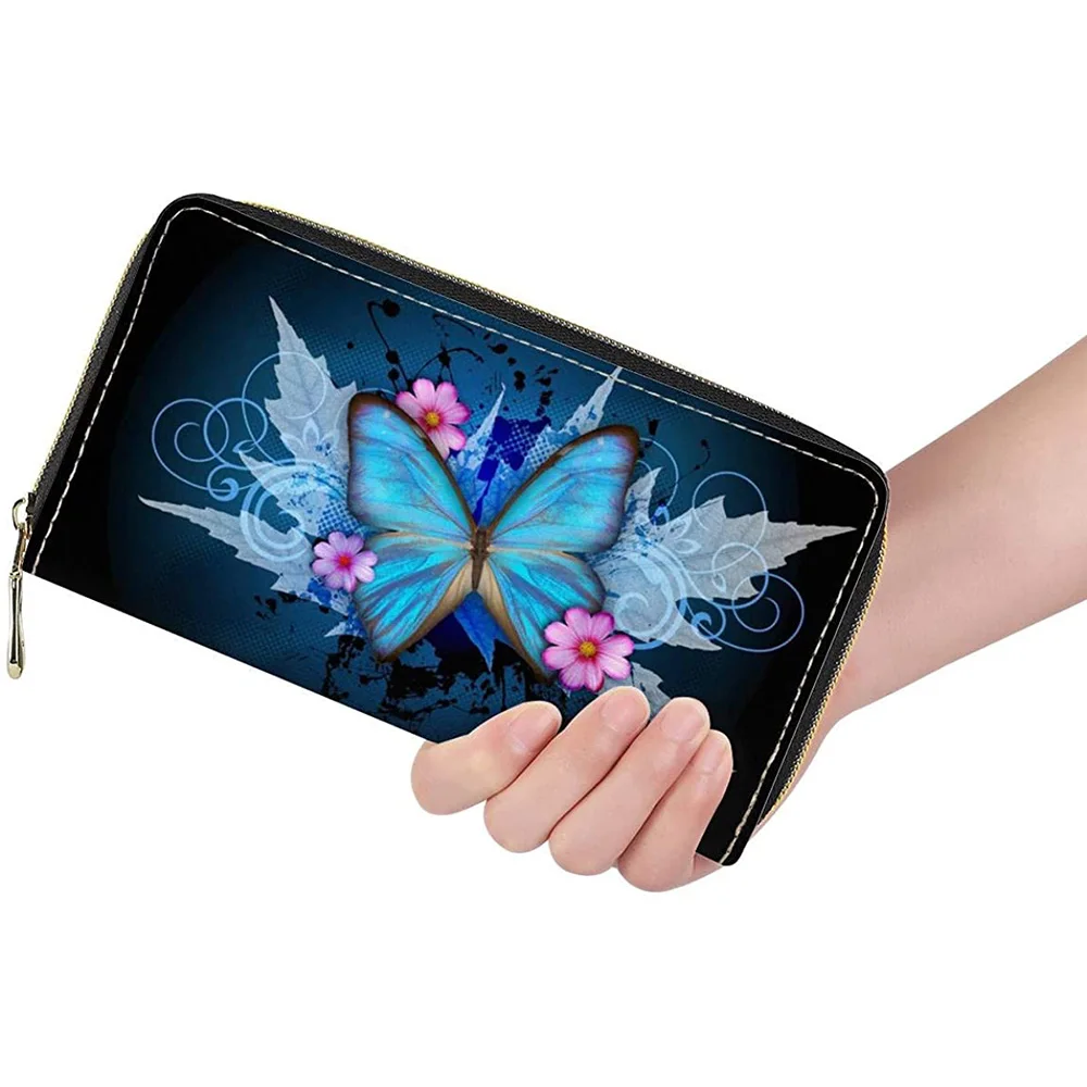 Синие длинные женские кошельки, кошелек на молнии для монет, держат...
